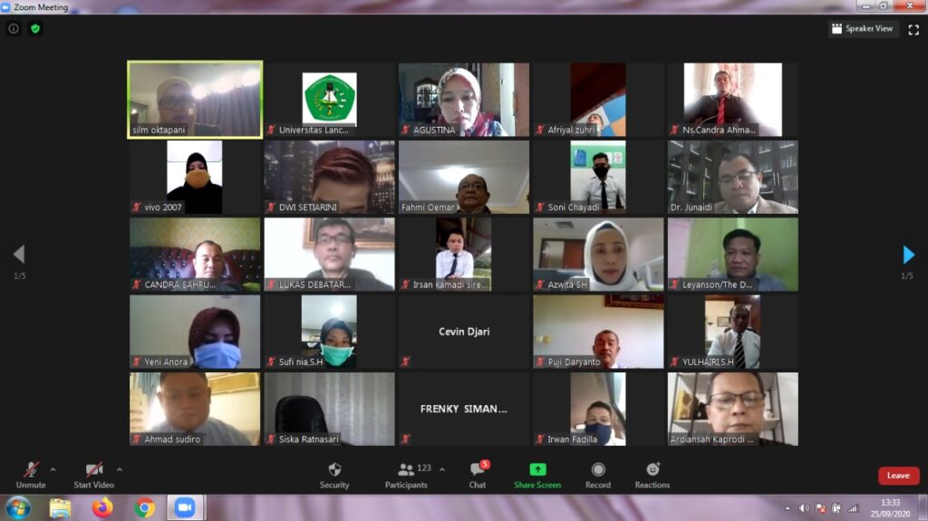 Pelaksanaan dilakukan Jumat siang (25/9/2020) lalu, dibuka oleh Rektor Unilak Dr Junaidi SS MHum, dihadiri Sektretaris Pascasarjana Unilak Dr Helwen, Kaprodi Hukum Dr Ardiansah SAg SH MH, Kaprodi Magister Manajemen Dr Fahmi Oemar, serta dosen.