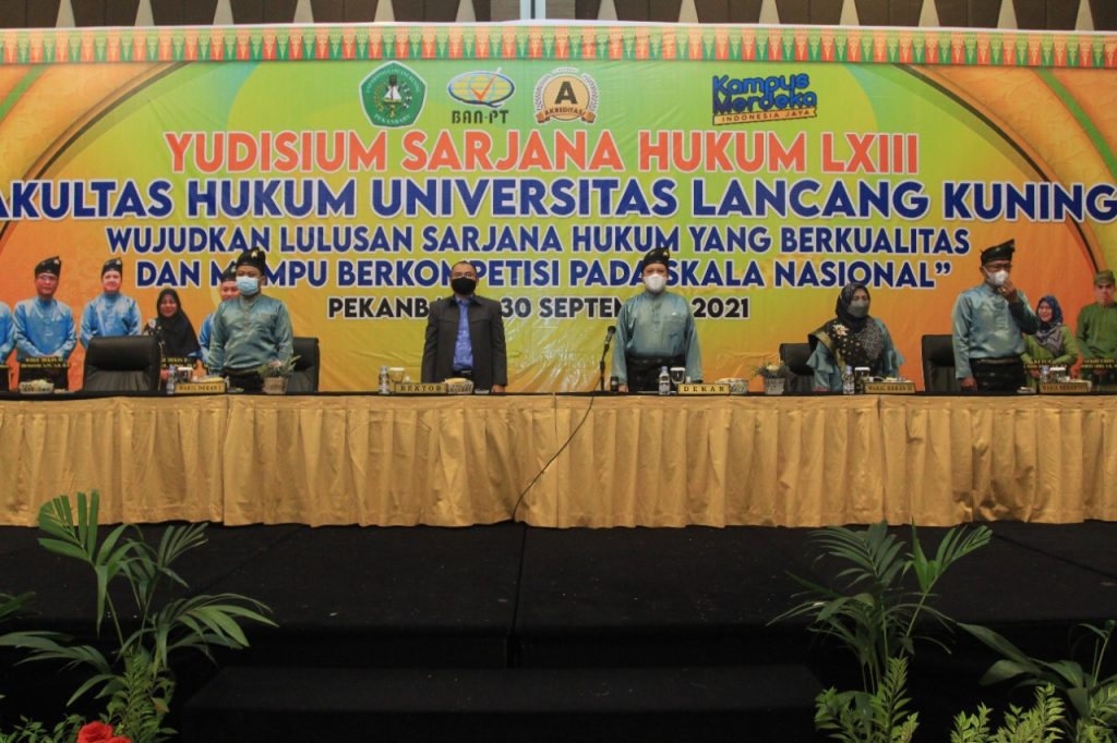 Cakrawalatoday.com – Mengangkat tema ‘Wujudkan sarjana hukum yang berkualitas dan mampu berkompetisi pada skala nasional’, Fakultas Hukum Universitas Lancang Kuning (Unilak) Pekanbaru menggelar Yudisium LXIII, Kamis 30 September 2021, di hotel Pangeran Pekanbaru.