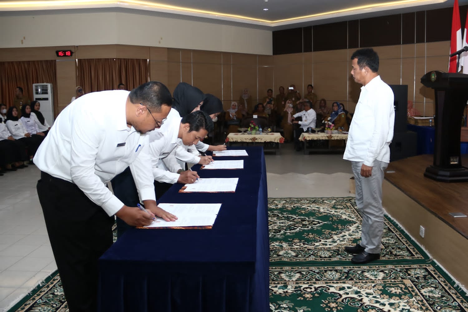 Penyerahan diawali dengan penandatangan naskah perjanjian kerja, di Aula Engku Hamidah Lantai IV Kantor Wali Kota Batam, Selasa (6/6/2023).