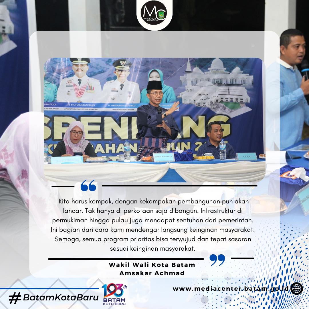 MC Pemko Batam – Wakil Wali Kota Batam, Amsakar Achmad, terus mengajak masyarakat menjaga kekompakan dalam membangun Batam.