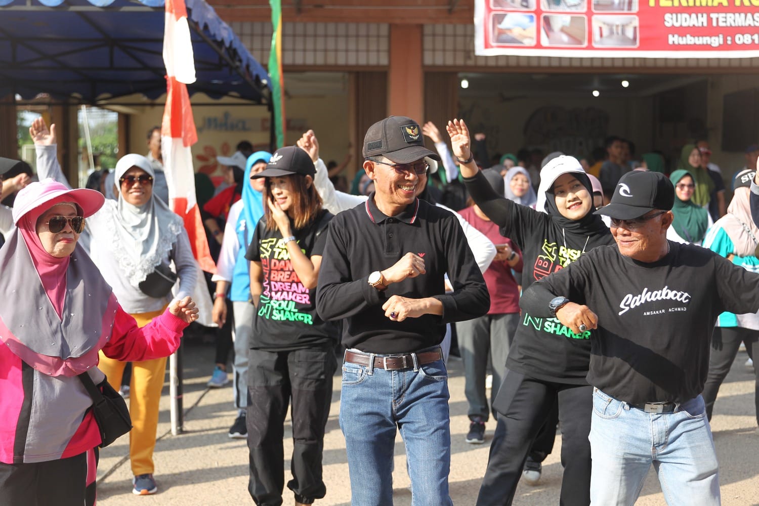 MC Pemko Batam – Wakil Walikota Batam Amsakar Achmad senam bersama masyarakat di Kecamatan Batuaji, tepatnya di komplek Ruko Tambolin, Batuaji.