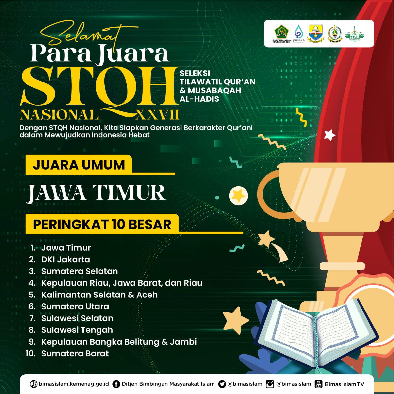 ๐๐ข๐ฌ๐ค๐จ๐ฆ๐ข๐ง๐๐จ ๐๐๐ญ๐๐ฆ – Seleksi Tilawatil Qurโan dan Musabaqah Al Hadist (STQH) XXVII di Provinsi Jambi yang berlangsung sejak 30 Oktober 2023 lalu resmi ditutup pada Senin (6/11/2023).
