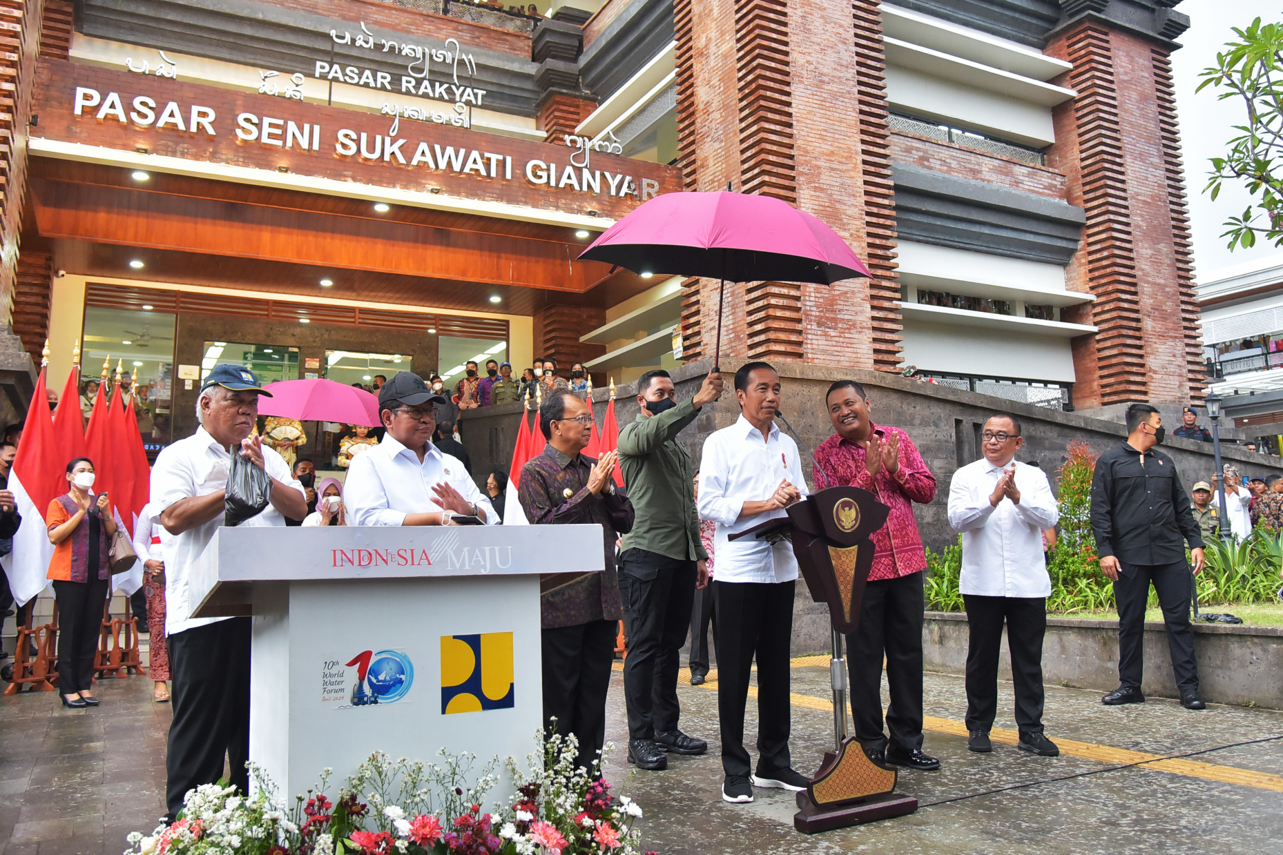 Presiden Jokowi didampingi sejumlah pejabat saat peresmian Pasar Seni Sukawati, di Gianyar, Bali, Rabu (02/01/2023). (Foto: Humas Setkab/Agung)