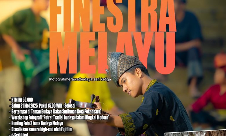 Mengusung tajuk Finestra Melayu, seri ke-3 #fotografimerawatbudaya KFP ini rencananya akan digelar pada Sabtu, 31 Mei 2025 di Taman Budaya, Jalan Jenderal Sudirman, Pekanbaru. Kegiatan berupa Workshop Fotografi ‘Potret Tradisi Budaya dalam Bingkai Modern” dan hunting (berburu) foto 3 tema Budaya Melayu.