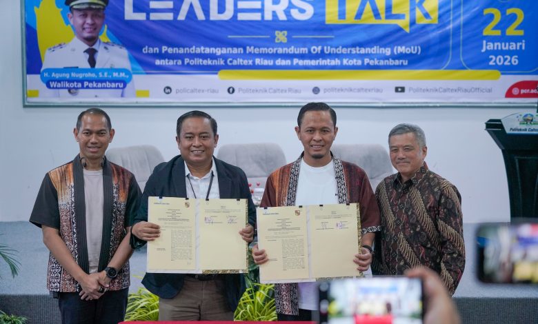 Cakrawalatoday.com — Pemerintah Kota (Pemko) Pekanbaru resmi menjalin kerja sama dengan Politeknik Caltex Riau (PCR) melalui Memorandum of Understanding (MoU). Penandatanganan MoU dilaksanakan bersamaan dengan kegiatan Leaders Talk di Auditorium Politeknik Caltex Riau, Kamis (22/1/2026).