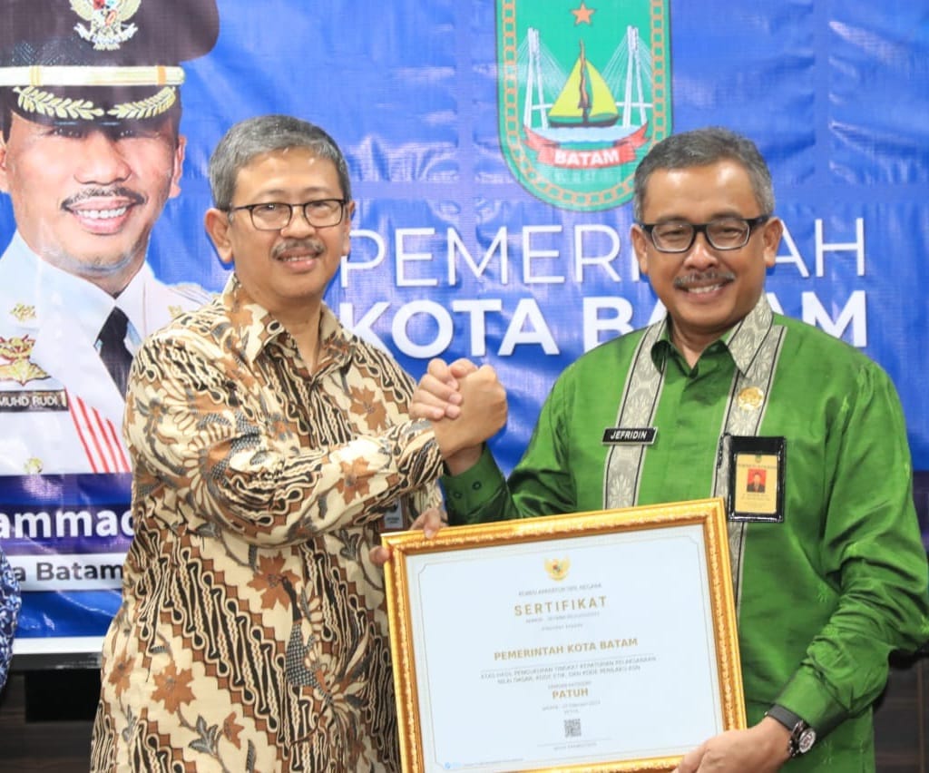 Pemko Batam Raih Penghargaan Kategori Patuh Pada Tingkat Kepatuhan Pelaksanaan Nilai Dasar, Kode Etik, dan Kode Perilaku ASN