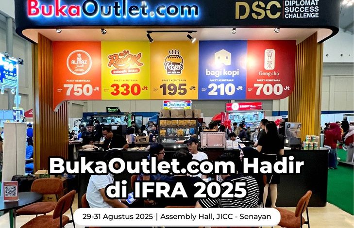 Jakarta — Setelah sukses dengan event pameran sebelumnya, yakni di The International Franchise, License and Business Concept Expo (IFRA) pada bulan April lalu, BukaOutlet.com kembali hadir pada gelaran pameran franchise bergengsi IFRA, yang akan berlangsung di area Jakarta International Convention Center, Senayan pada 29–31 Agustus 2025. Hal ini tentunya jadi momentum spesial karena mulai di tahun 2025 inilah IFRA digelar dua kali dalar setahun.